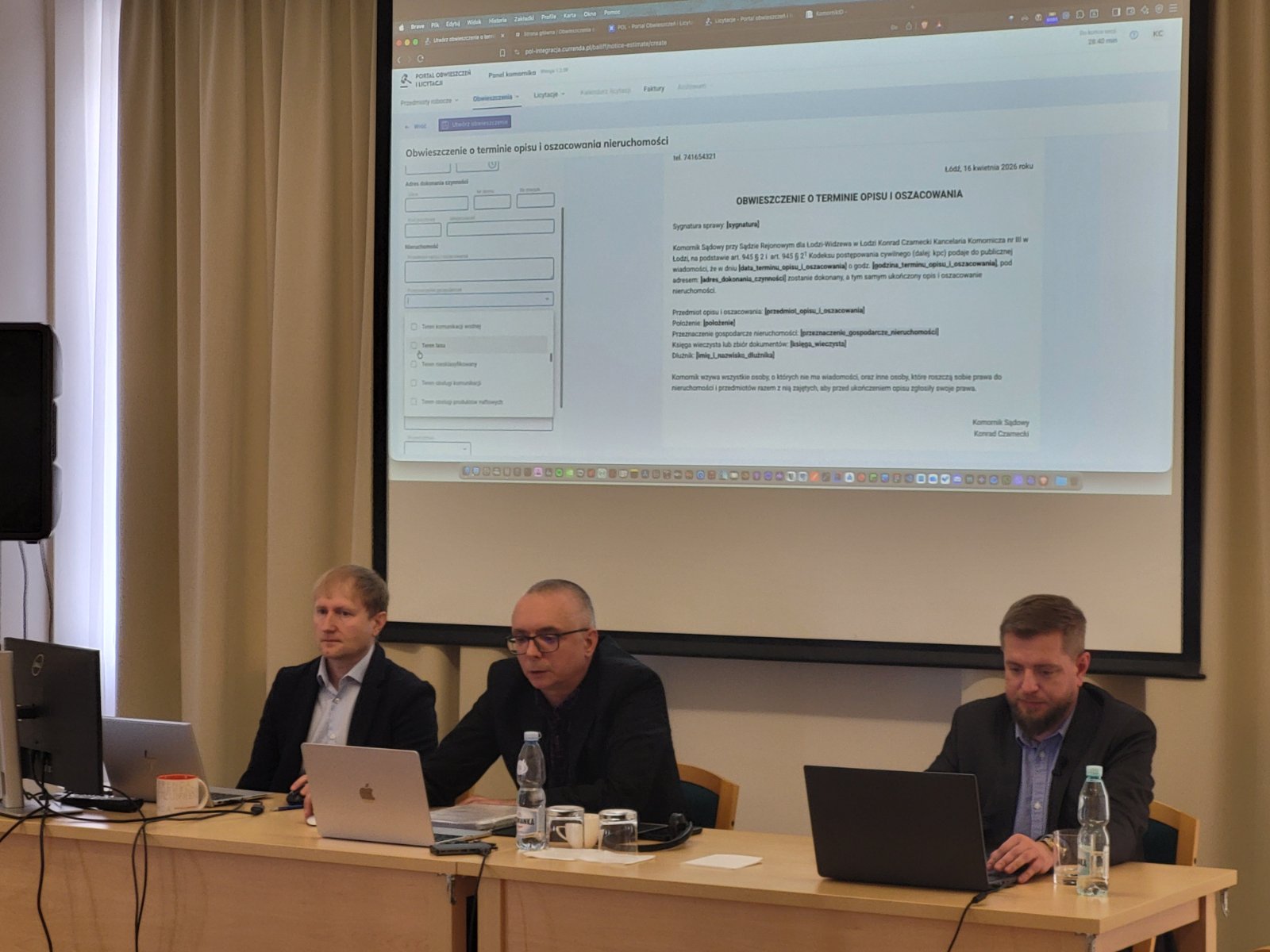 W dniu 16 kwietnia 2026r. w siedzibie naszej Izby w Sopocie odbyło się szkolenie z zakresu obsługi systemów Komornik SQL oraz e-komornik w zakresie wykorzystania modułów POL (licytacje i obwieszczenia), PII (System Informacyjny Sądów Powszechnych) oraz KSEF. Szkolenie przeprowadzili pracownicy spółki Currenda Sp. z o.o. odpowiedzialni za tworzenie, utrzymanie i rozwój każdego z tych rozwiązań.